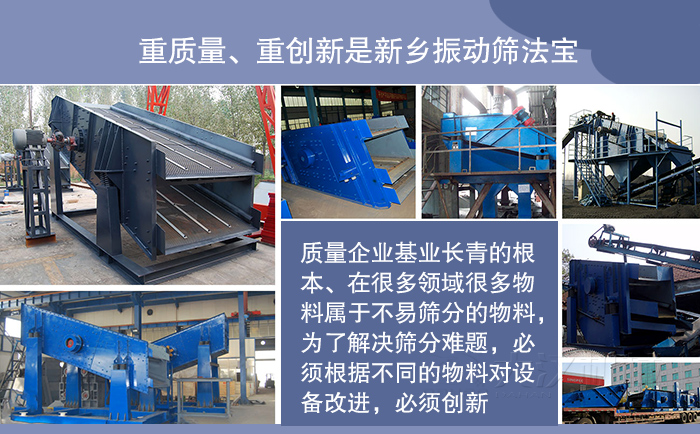 由于振動篩的客戶與振動篩廠家是長期的合作關系,如果質量達不到客戶要求,解決不了客戶的實際篩分難題,客戶就很難再次選購你的產品,所以講質量企業基業長青的根本、在很多領域很多物料屬于不易篩分的物料,為了解決篩分難題,必須根據不同的物料對設備改進,必須。