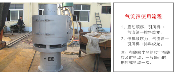 氣流篩篩分效率高、篩網立裝不荷重。適應細度范圍廣,全封閉結構,噪音小能耗低、可連續作業。