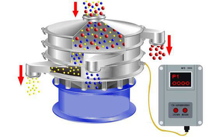 超聲波振動篩機篩分系統由超聲波諧振電源,換能器,共振環組成。利用超聲波振篩機的高頻振動,使篩網上的物料在作低頻旋振運動的同時,疊加上超聲振動,既可防止網孔堵塞,又可使篩分機提高產量和質量,從而達到快速篩分和清網的目的,使超微細粉篩分成為易事。