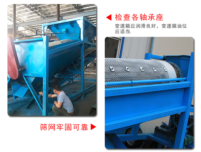 滾筒篩是由六角形滾筒、機架、漏斗、減速器、電動機五個部分成。