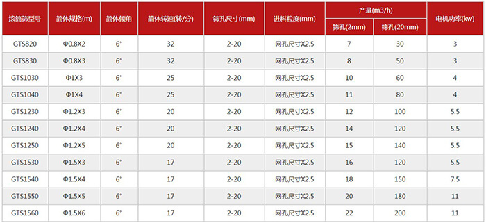 大型滾筒篩沙機技術參數(shù)